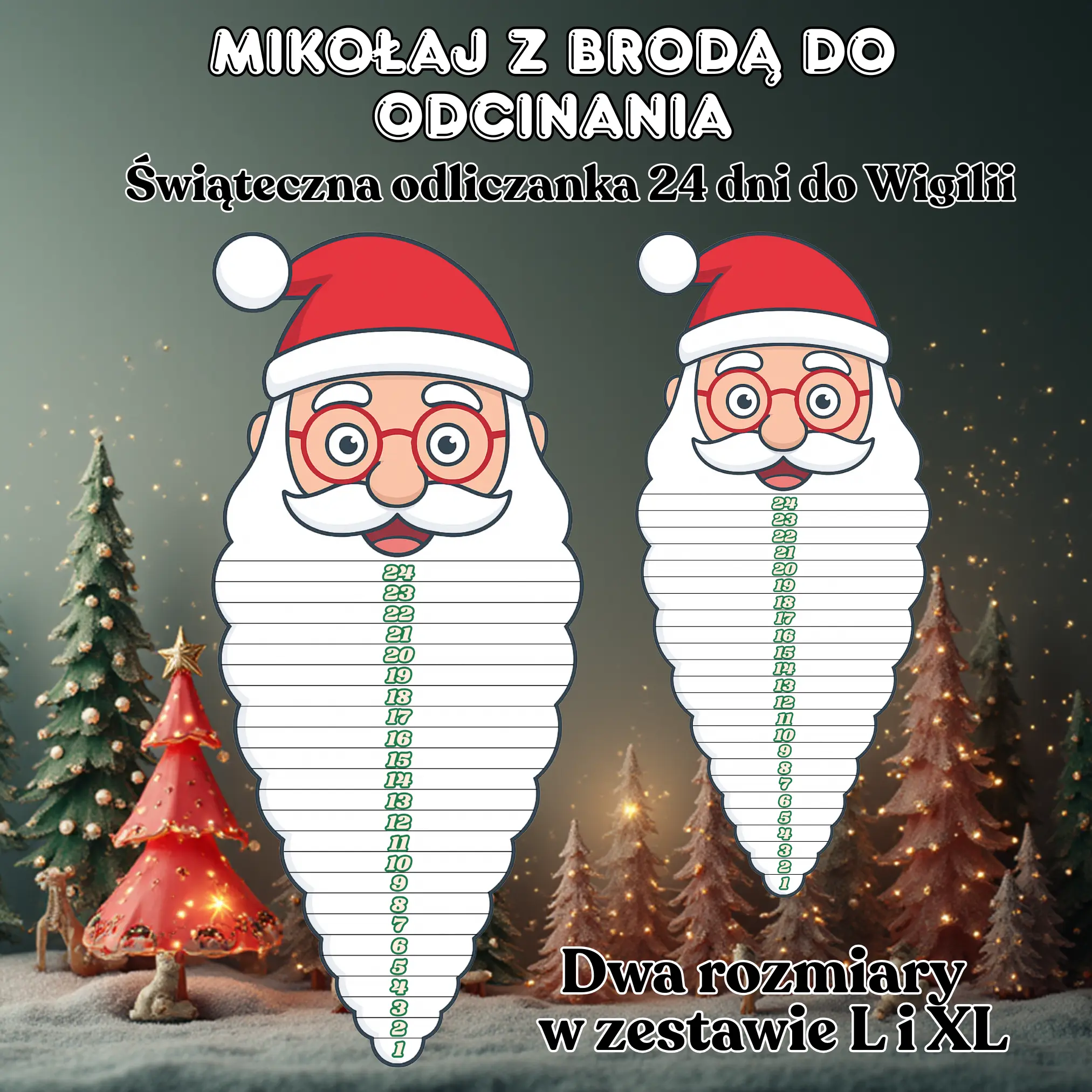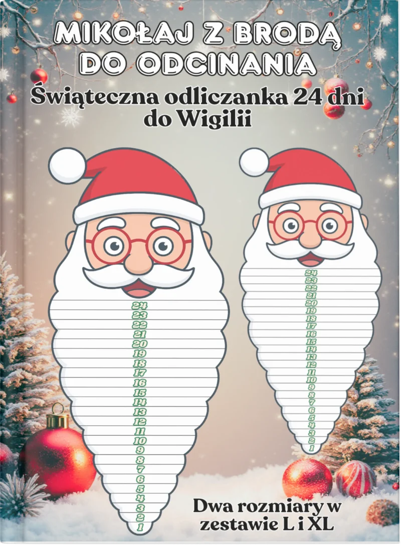 Mikołaj z Brodą do Odcinania – Kalendarz Adwentowy dla Dzieci (L i XL)